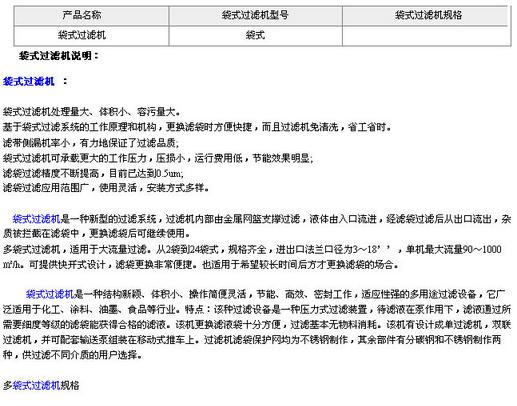 袋式過濾機(jī)是一種新型的過濾系統(tǒng),過濾機(jī)內(nèi)部由金屬網(wǎng)籃支撐濾袋,液體由入口流出,經(jīng)濾袋過濾后從出口流出,固體物被攔截在濾袋中,更換濾袋后可繼續(xù)使用。1.袋式過濾處理量大、體積小,容污量大。2.基于袋式過濾系統(tǒng)的工作原理和結(jié)構(gòu),更換濾袋時(shí)方便快捷,而且過濾機(jī)免清洗,省工省時(shí)。3.濾袋側(cè)漏機(jī)率小,有力的保過濾機(jī)價(jià)格證了過濾品質(zhì)。4.袋式過濾可承載更大的工作壓力,壓損小,運(yùn)行費(fèi)用低,節(jié)能效果明顯。5.濾袋過濾精度不斷提高,目前已達(dá)到1.5um。6.袋式過濾應(yīng)用范圍廣,使用過濾機(jī)靈活,安裝方式多樣。