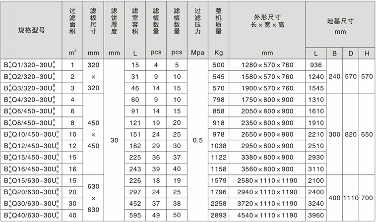 千斤頂壓緊板框式壓濾機技術參數(shù)