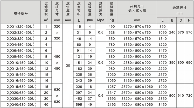 千斤頂壓緊廂式壓濾機技術參數(shù)